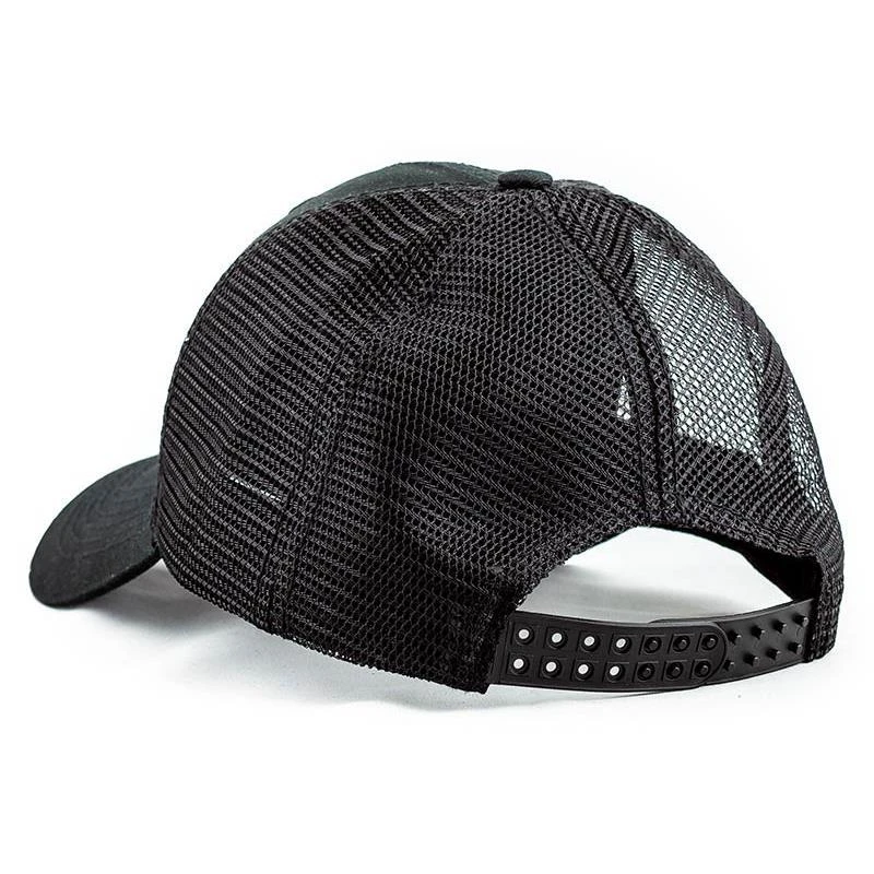 • Modèle « Trucker » (panneau frontal rigide en coton, visière en coton et filet léger en PVC tressé).