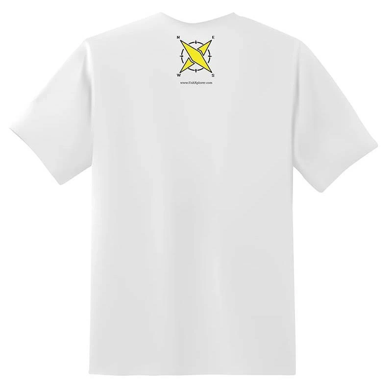 ⹠Rose des vents FishXplorer imprimée sur le haut du dos du T-shirt.